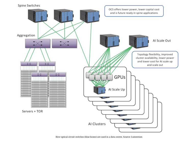 · AI data centers contain thousands of chips that must communicate at extreme speeds.