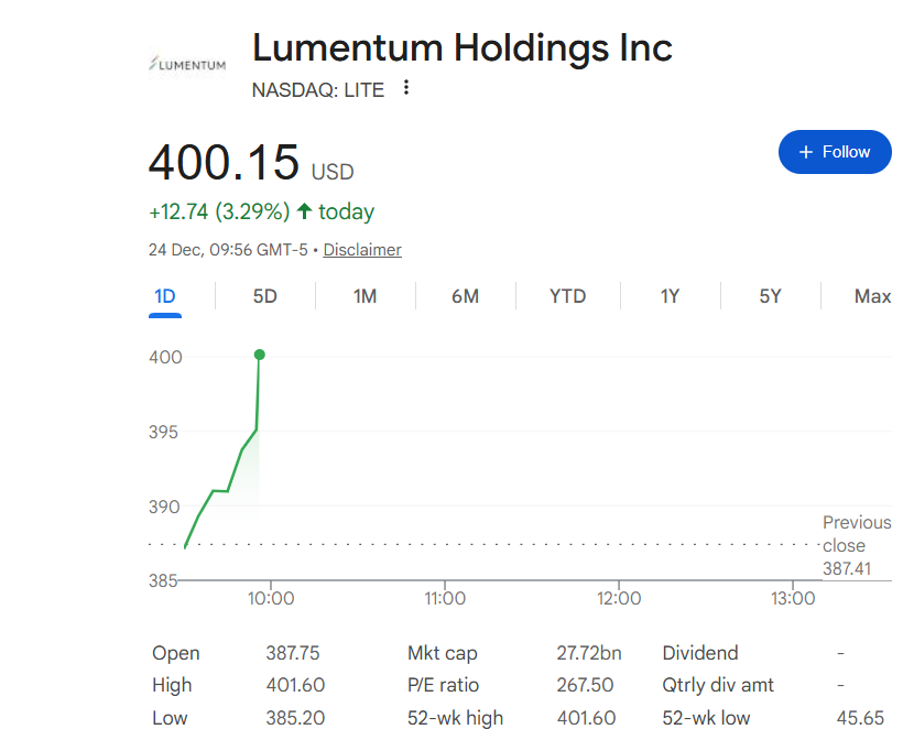 As predicted on December 19th Lumentum Reached 400 USD today